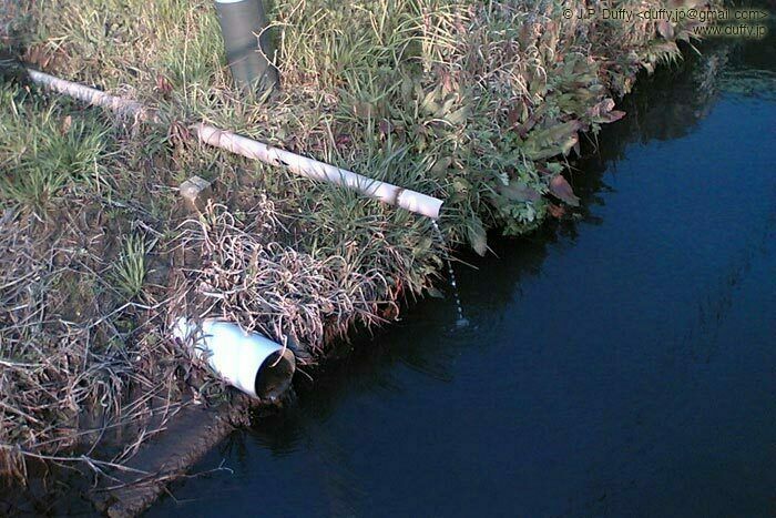 Arguably this photo is not very interesting.  I also have a picture today of a box of mini doughnuts I bought that turned out to be individually wrapped.  Can you imagine yourself eating just one delicious mini doughnut?  But that seemed to have such a negative tone.  So I replaced it with this cell-phone picture of a near overflowing drainage channel.  Hopefully you won't be so disappointed by this picture that you'll skip the next few days.  The cherry blossoms are due any time now.