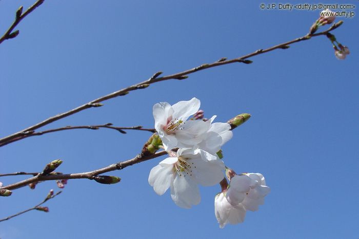 I would like to take this opportunity to give a shout out to Sony for making a fantastic digital camera.  Here we have a shot of the new Sakura or cherry blossoms.  My friend Myris is set to arrive in Japan on Friday, and I'm crossing my fingers in hopes that he doesn't miss it.  It only lasts a few days, and will probably start in full force tomorrow.  --Just a cultural aside, in Japan we also have the term "shout-out."  It's "???????" or pretty much, "shout-o out-o."  I think it's cute when the Japanese pop stars use it.