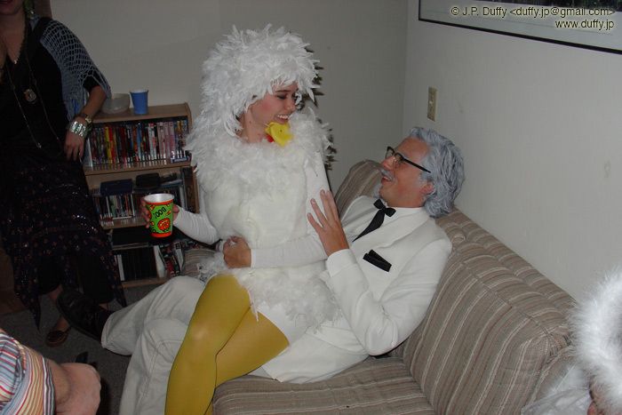 At the halloween party there happened to be a guy dressed as Colonel Sanders from Kentucky Fried Chicken, and a girl dressed as a chicken.
