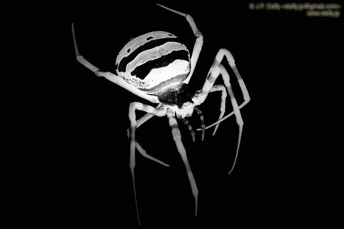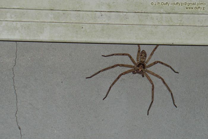 I realize there is nothing for perspective in the shot, but this thing was big. I noticed it just as it was getting dark on my balcony. You know how a camera's flash sometimes gives people red-eye? I've seen it on dogs and cats, but have you ever seen it on a spider before?