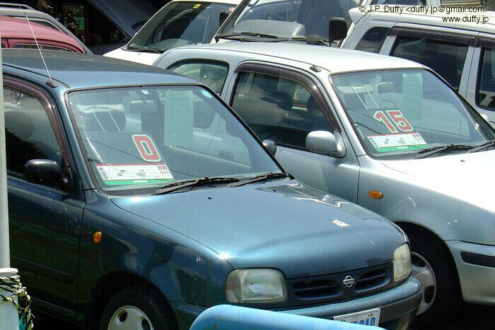 Here's a scene that may seem a bit strange if you don't know the automobile laws in Japan. This car is being sold at a used car dealership for zero yen. That's right around $0.00 USD. What's more, there have been no takers. It's a cheap little Nissan, but besides the big load of bird poo on the hood there's not a scratch on it. In Japan every two years, starting on a car's 3rd birthday, you need to pay a 130,000 yen inspection fee (Shakken). That's over $1000. Probably, this car is not worth $1000 and the inspection is coming up soon. My Canadian friend mentioned to me today that he knows of a shipping company that will ship a car to Canada for $1000. That's great, but one way or the other you're paying $1000 for a free car.