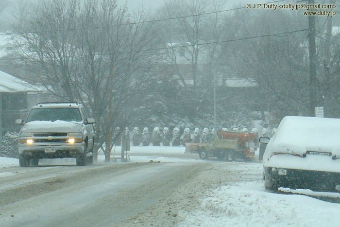 It snowed like crazy overnight. I stepped out of the house to snap a few pictures, and saw my neighbor walking his tiny little dog.