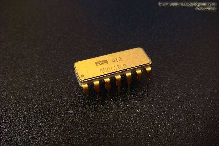 I took some cool macro shots of old computer electronics parts at work this morning. This chip was literally made out of gold. They didn't mess around back then.