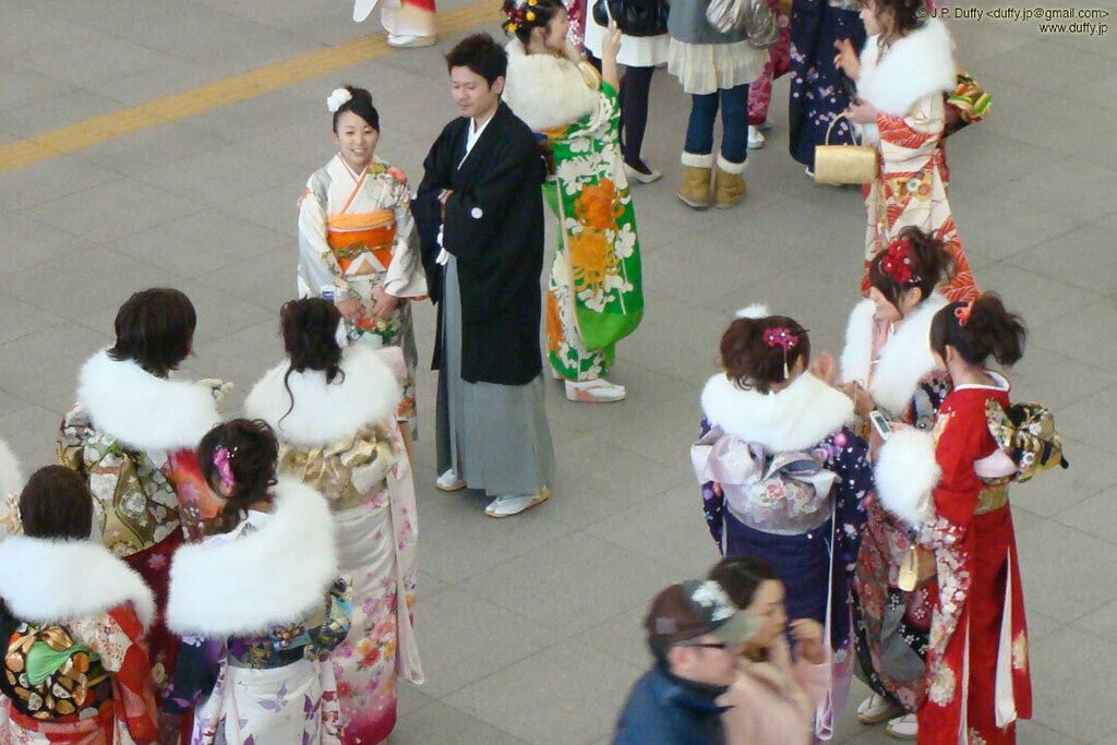 It is Coming of Age day in Japan today. Nearly all of the 20 year old young ladies wear a full Kimono, and many of the 20 year old men wear a western style suit, or as in the picture here, a traditional men's kimono.