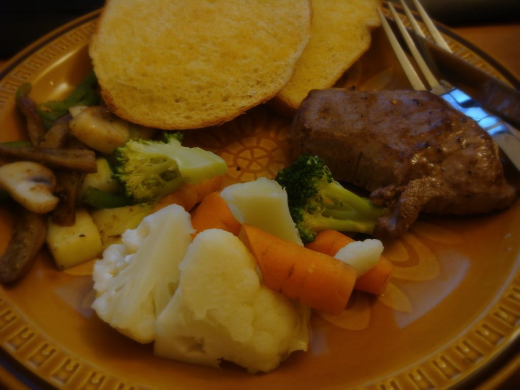 Tonight's dinner was Bison Steak with vegetables. Mmmm.