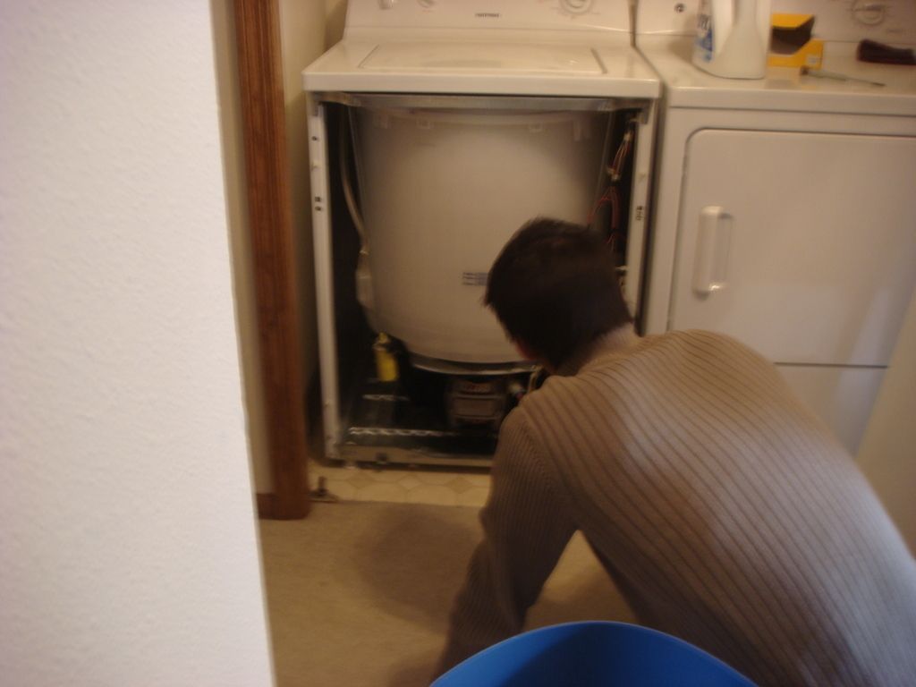 Washer isn't working. I popped off the front panel to see if it threw a belt or something else easy to fix. Looks and smells electrical. Calling it in.