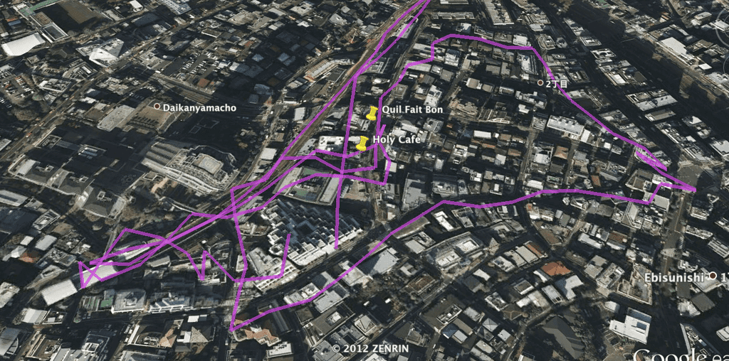 Today we visited the upscale Daikanyama neighborhood. We ate lunch at the Holy Cafe, and bought some fancy cakes from the french style Qu'il Fait Bon pastry shop. They put a little packet of dry ice in your take home box to keep your treats cool.