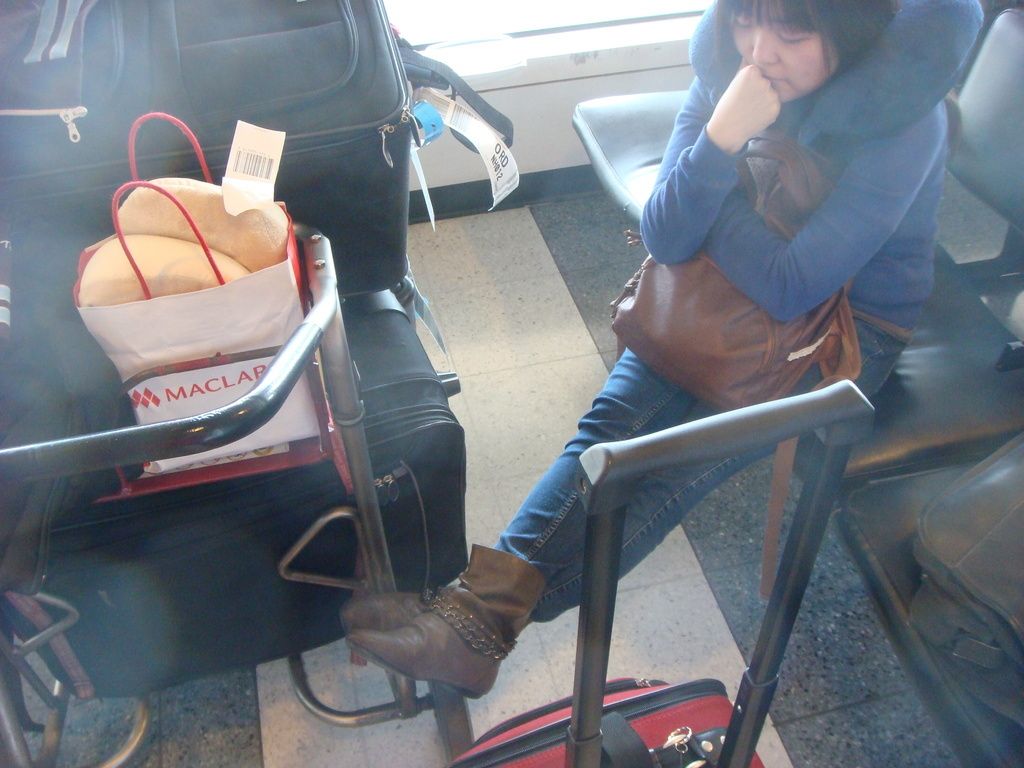 Back in America! This was taken in O'Hare waiting for the bus to Madison. We had two hours to burn and mostly just drank McDonalds coffee and zoned out. Finally got back to Madison around 4am Japan time.