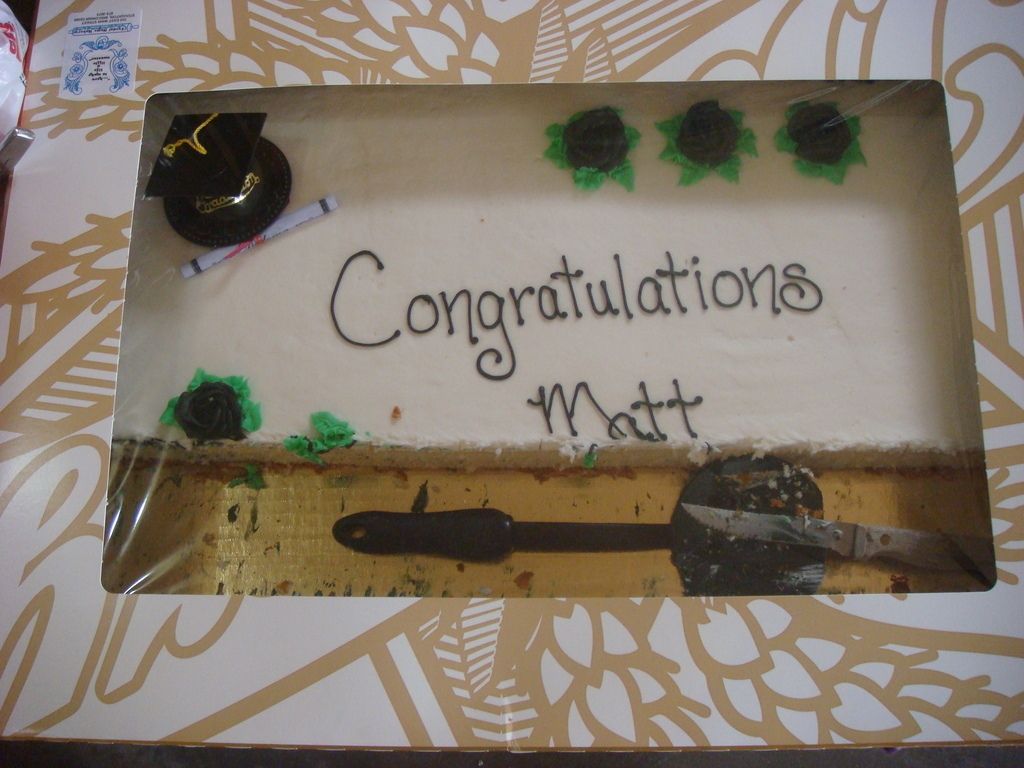We went to Matt P's graduation slash new job party today. He finished up his bachelors while also working full time and being the father of two kids. No small feat. It also opened up the door for his new job at Dell.