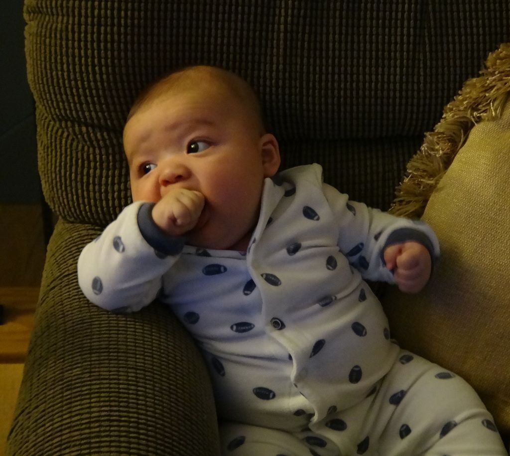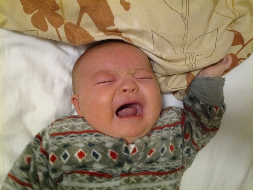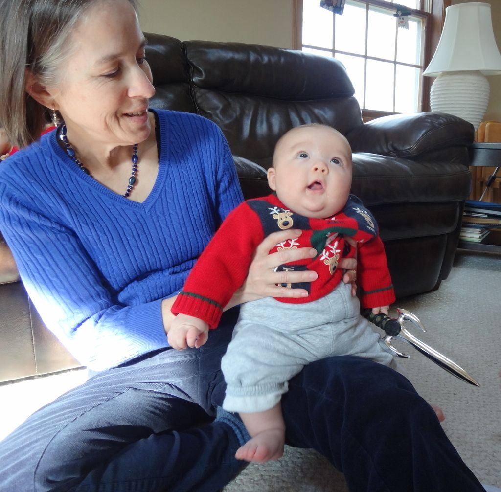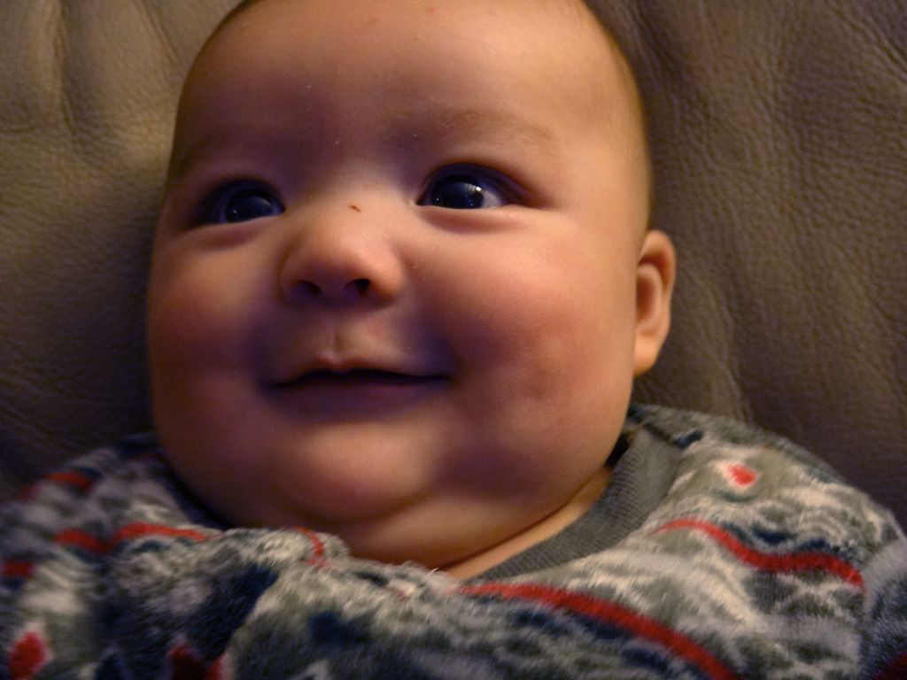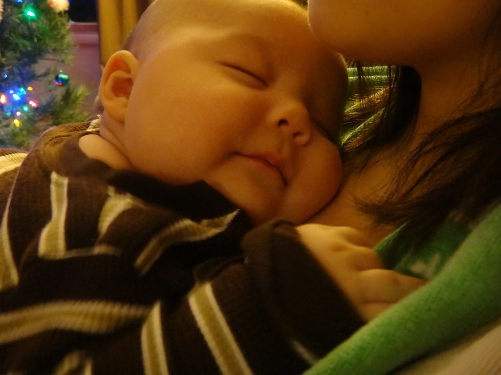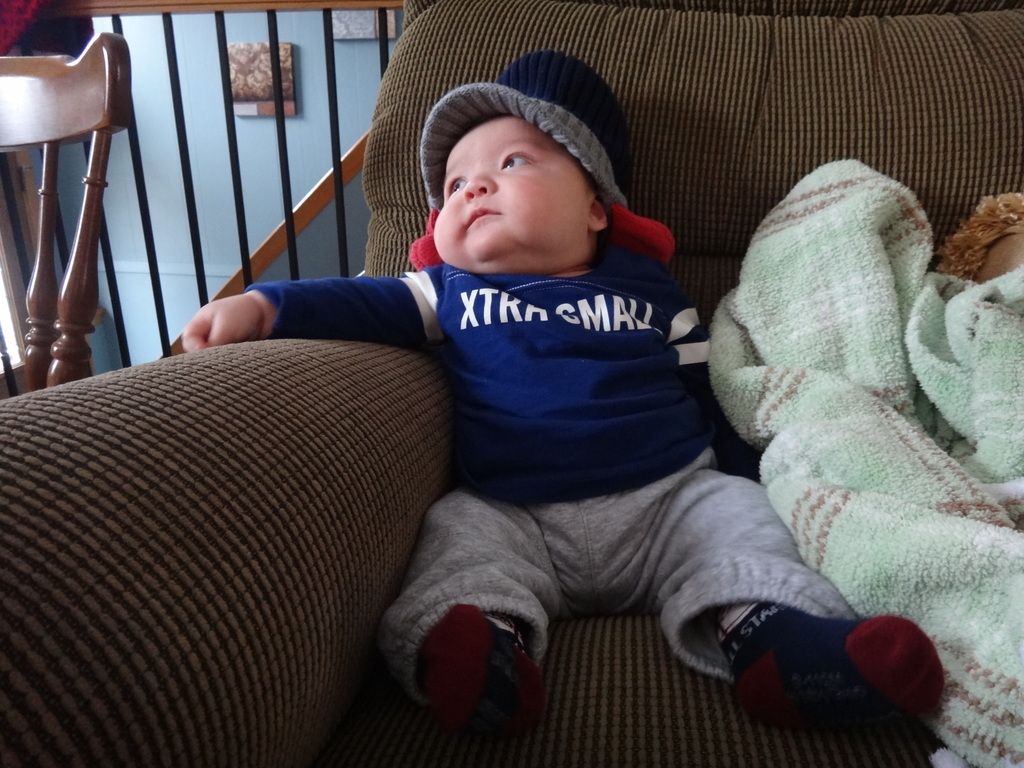Sasuke playing with his giraffe. He's not picking things up yet, but if you put a toy in his hand he'll hold onto it for a while.