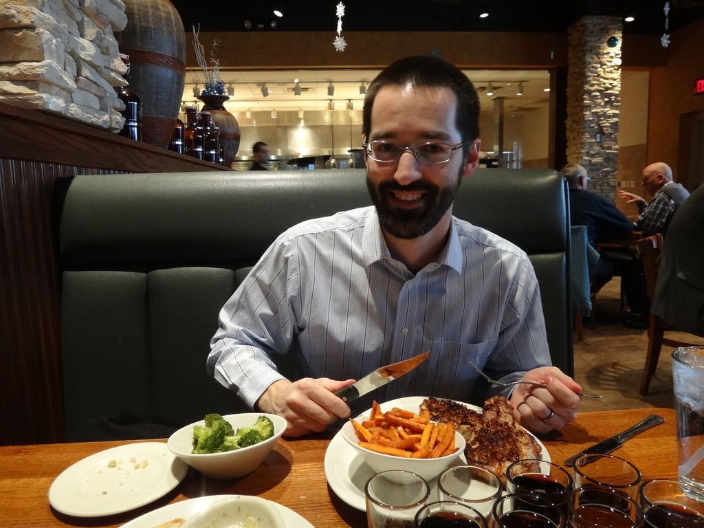 We went out for our five year anniversary. I had bone-in pork chops with candied pecans. It was amazing.