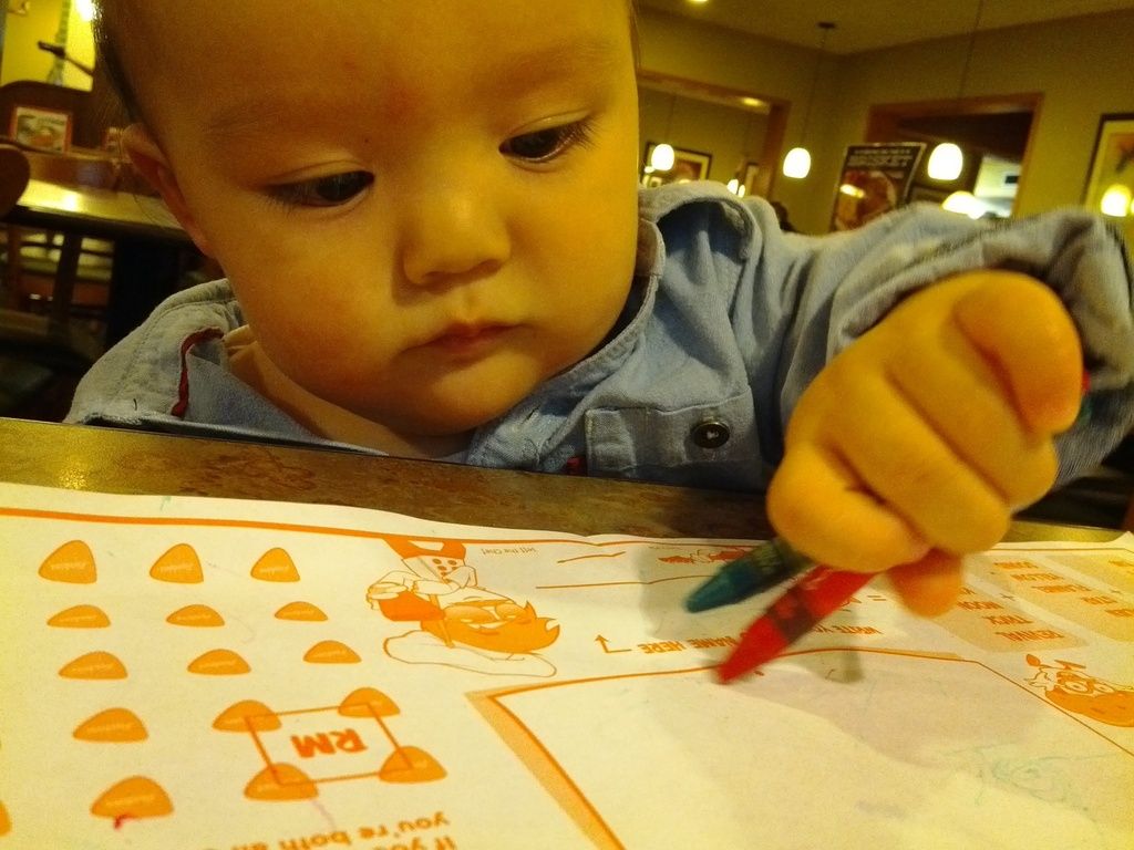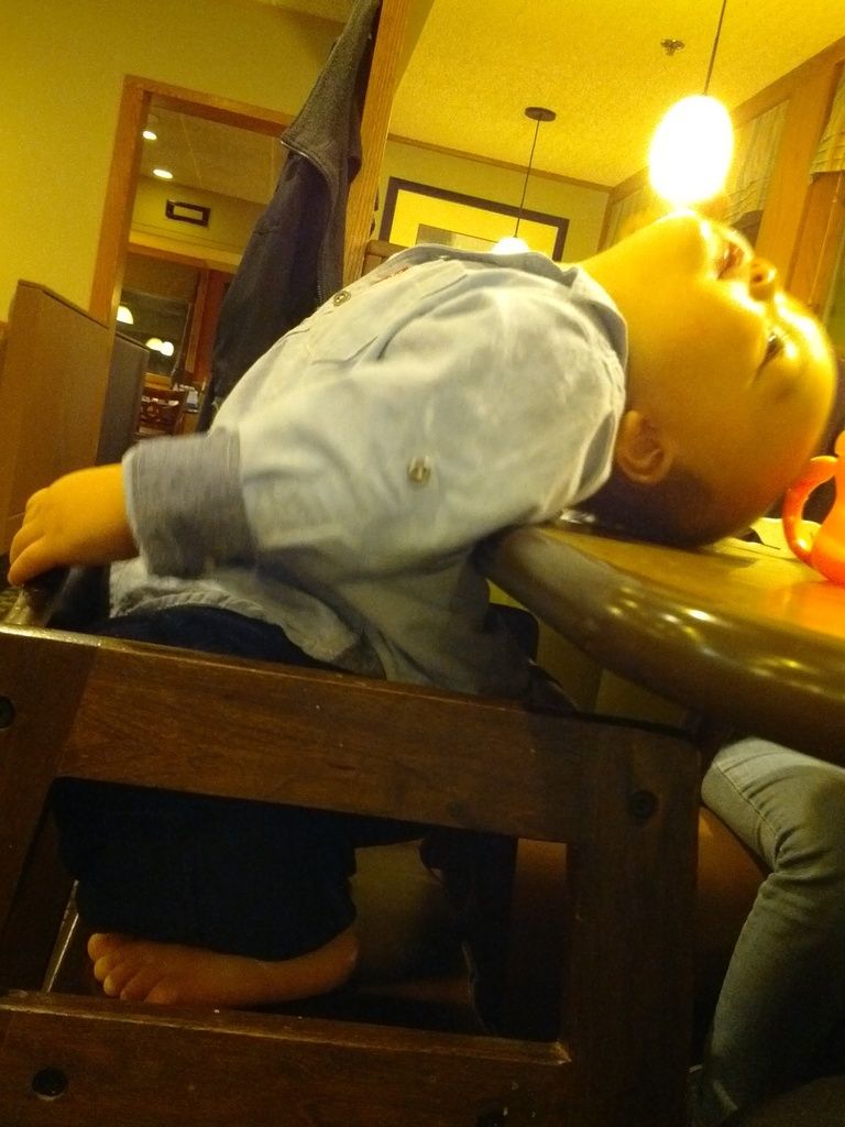 We went out to dinner at Perkin's.  Sasuke had an interesting take on posture.