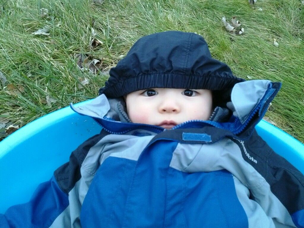 In the afternoon we took Sasuke sledding.