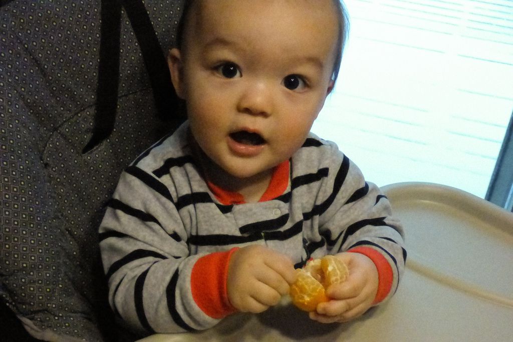 Sasuke wants to do a lot of things himself now, including peeling this orange.