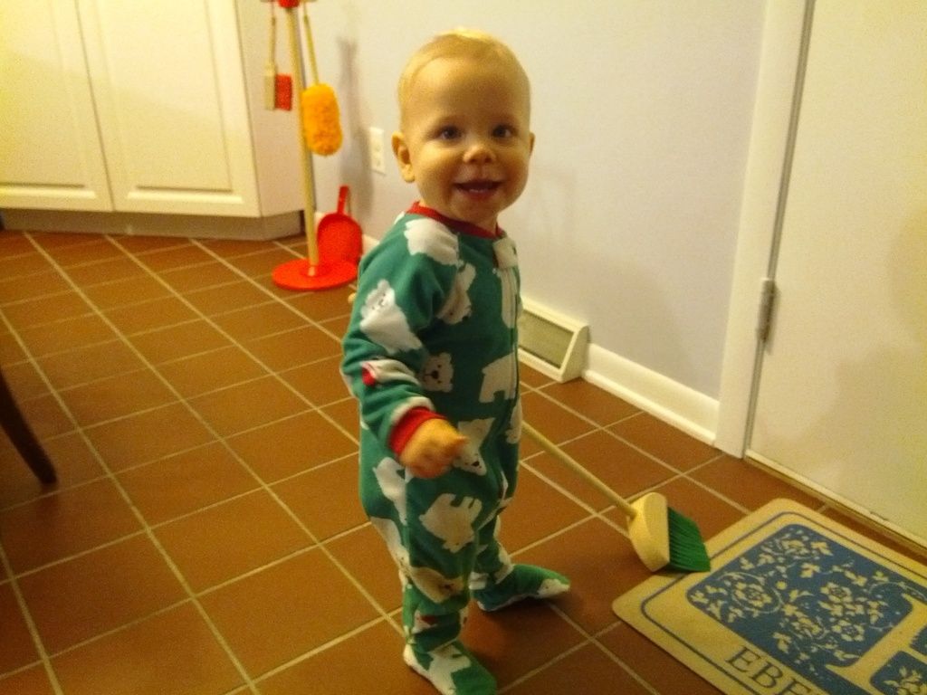 Henry likes helping clean up. I should buy Sasuke a little broom too...