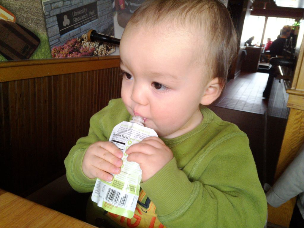 The person who thought to put baby food in an astronaut pouch is a saint. I'm sure the staff at Applebee's agree.