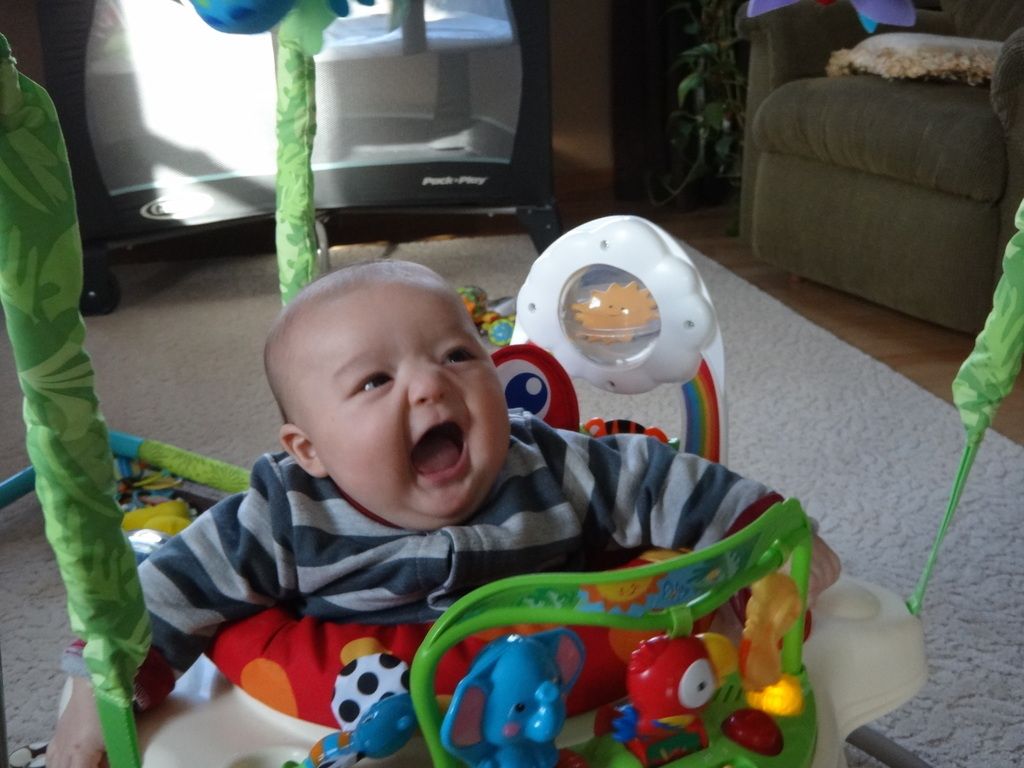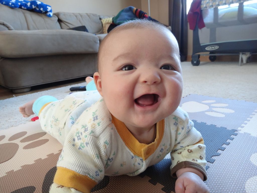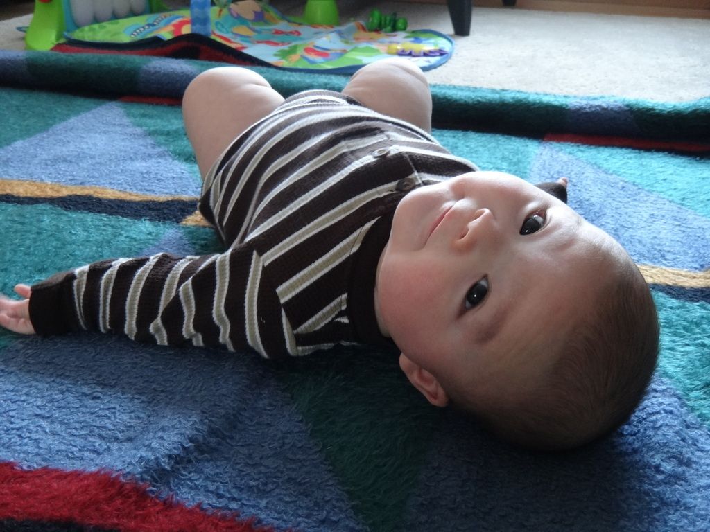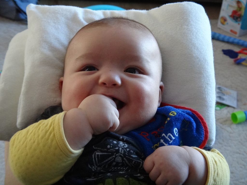 Sasuke on the Boppy playing. Our entire house is filled with nothing but baby stuff now...