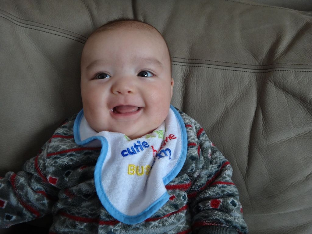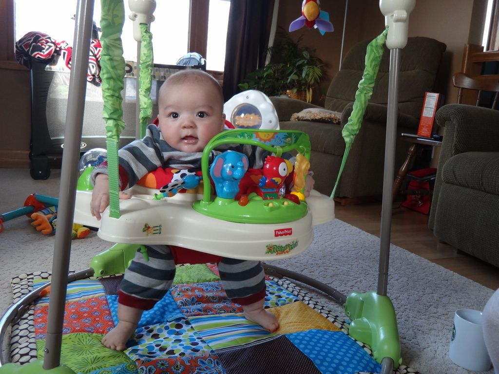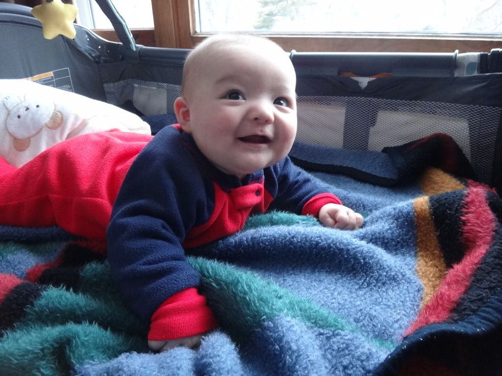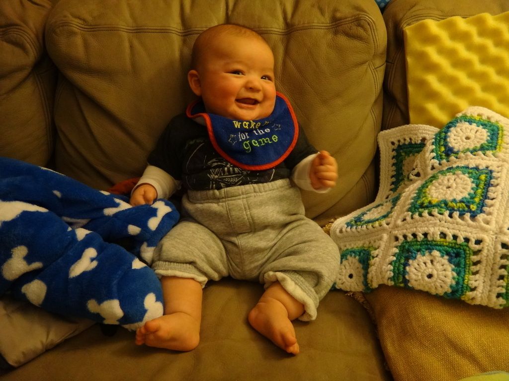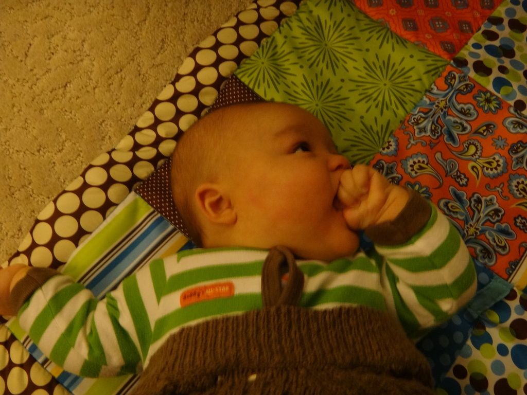 Sasuke on the Boppy playing. Our entire house is filled with nothing but baby stuff now...