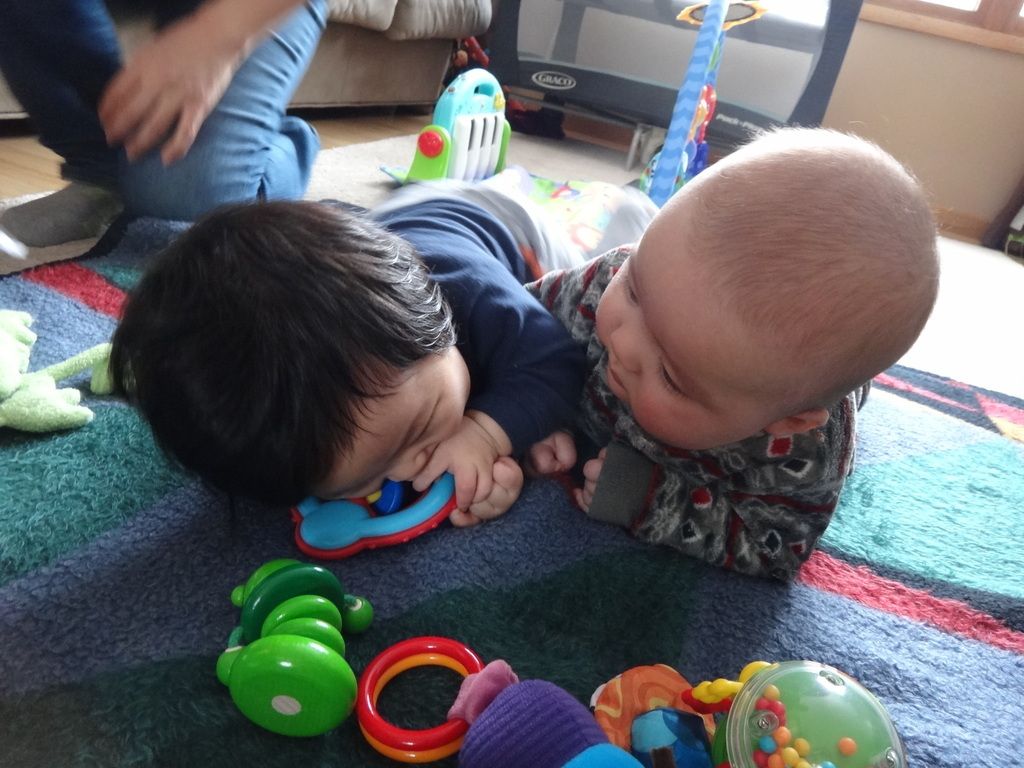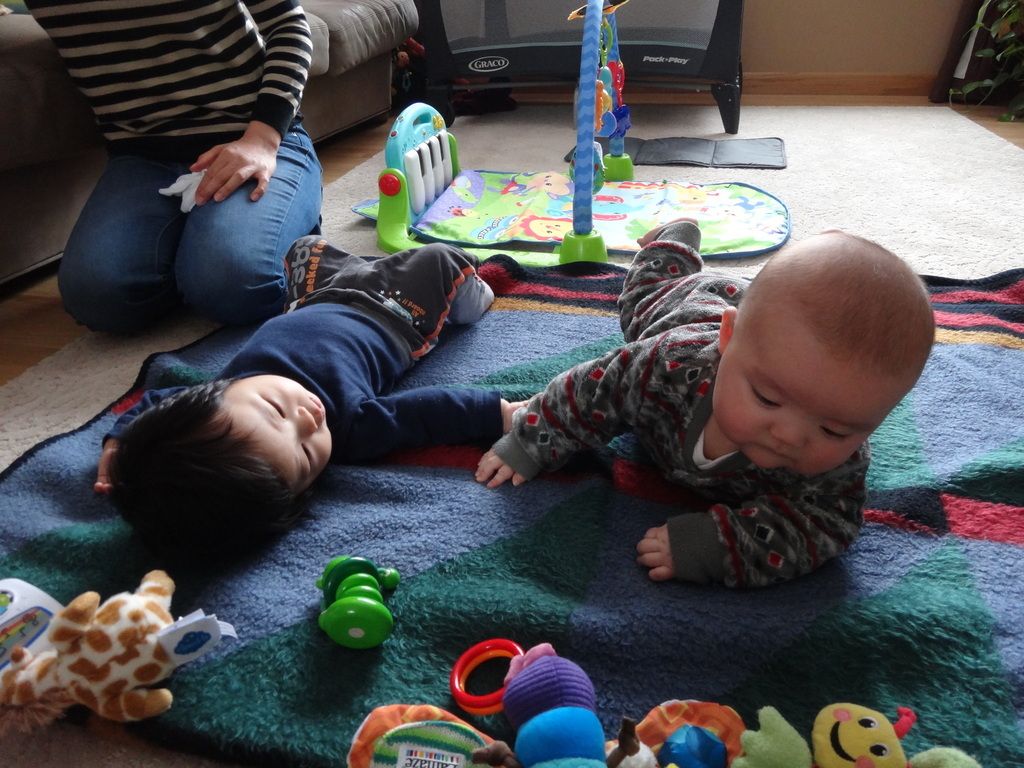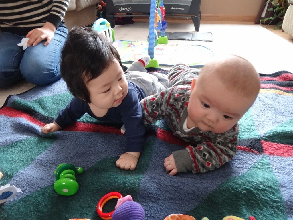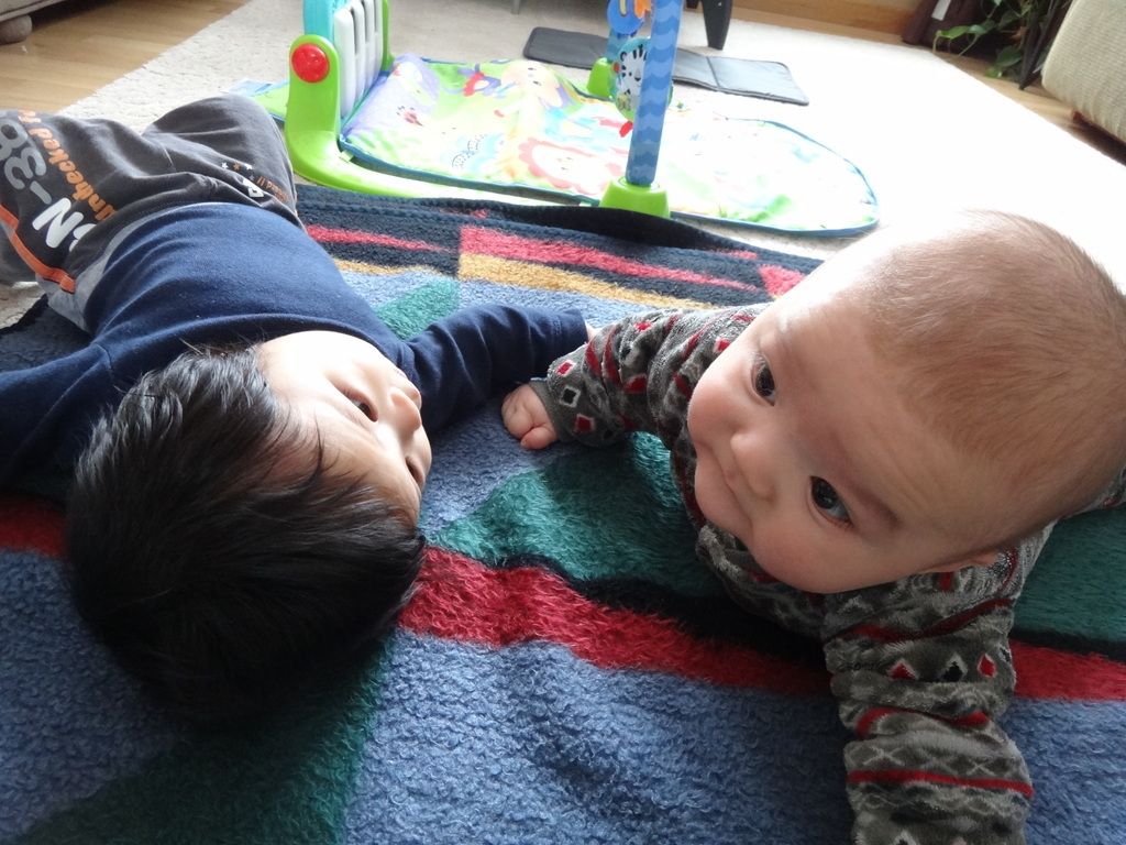 Sasuke playing with his (one month older) buddy Akito.
