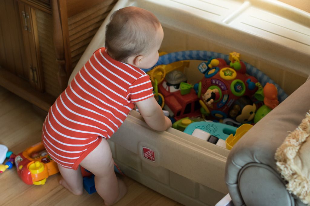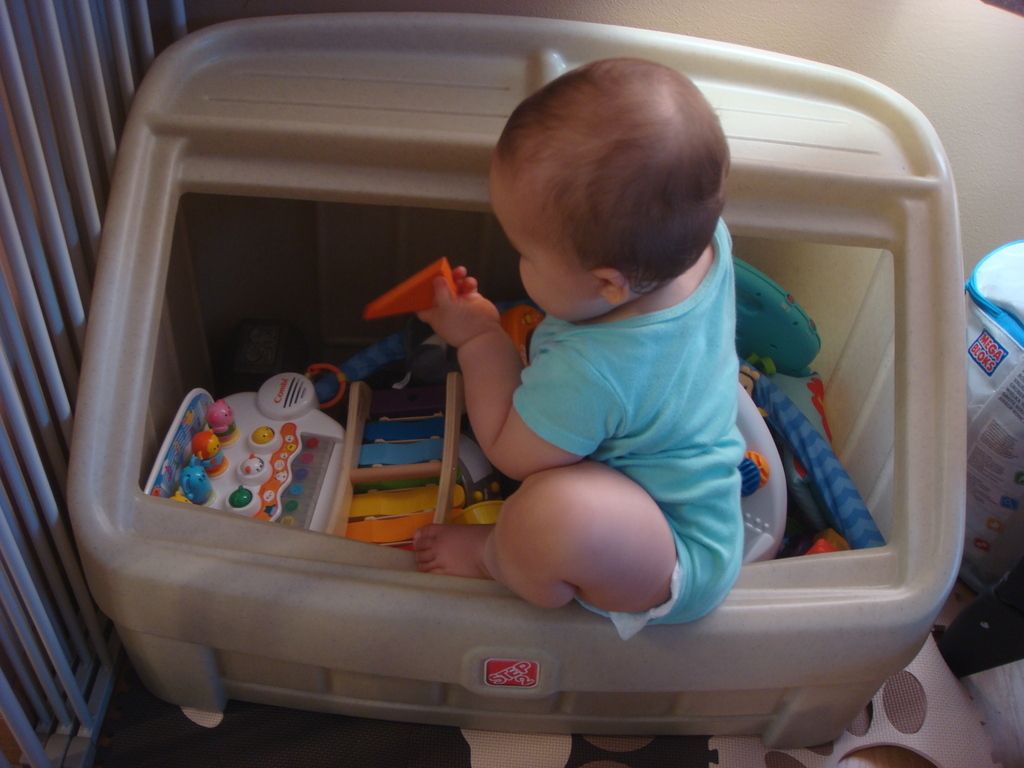 We bought a toy box for Sasuke. He loves it and it keeps our living room a little more livable.
