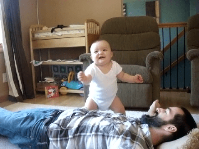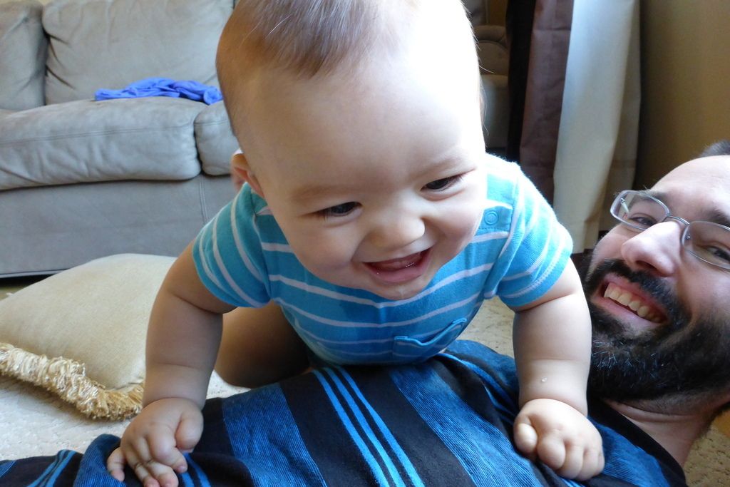 Sasuke's favorite game with me right now is to climb over me, turn around, and do it again. Any point during the game is prime glasses snatching time too.
