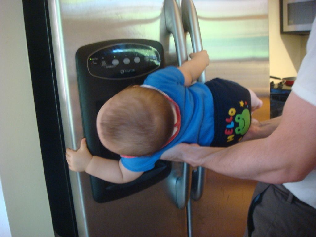 Sasuke was doing some American Ninja Warrior moves on our fridge.
