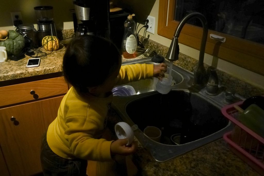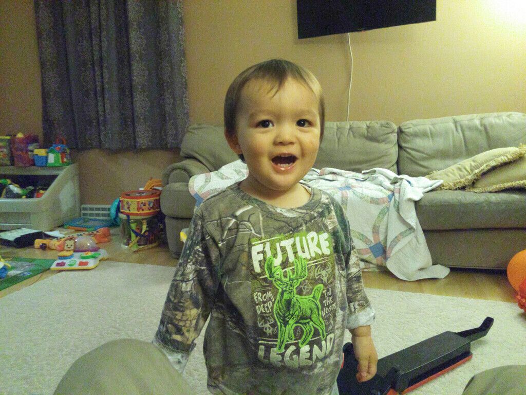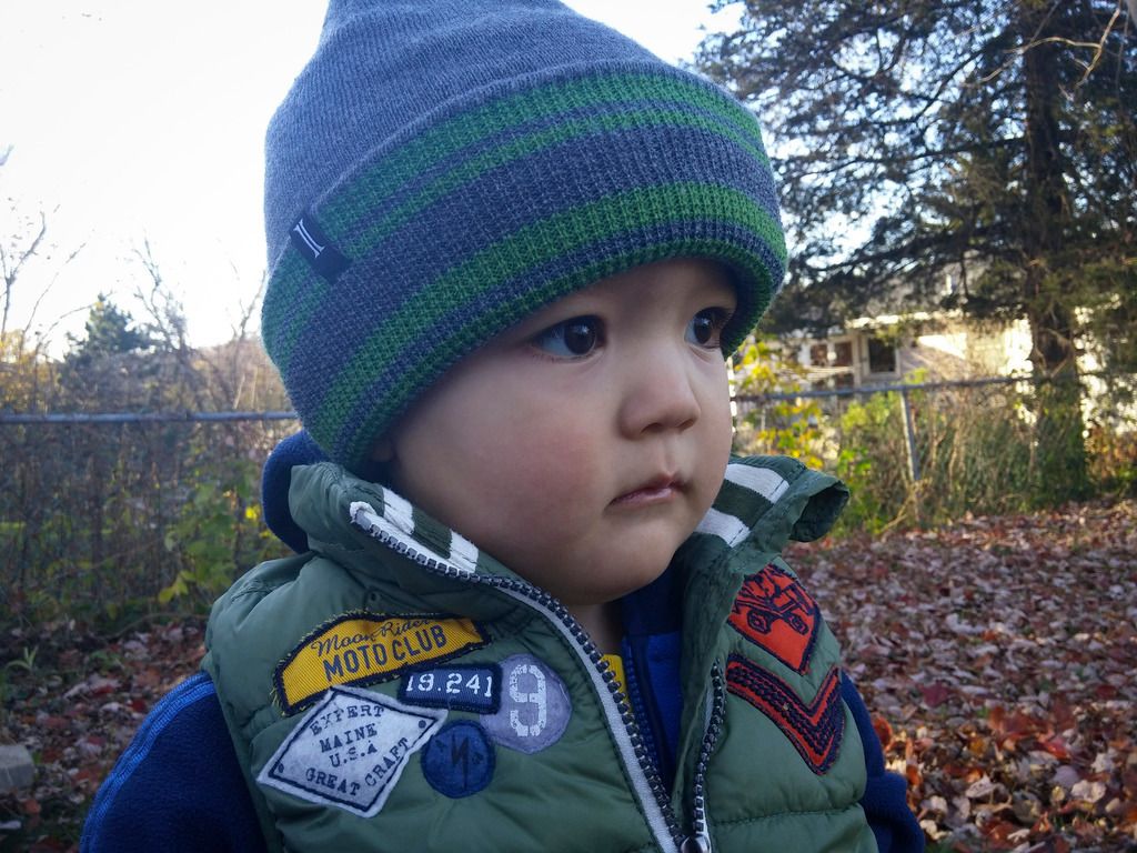 Masami altered a hoodie she never wore into a toddler size for Sasuke. He likes it.