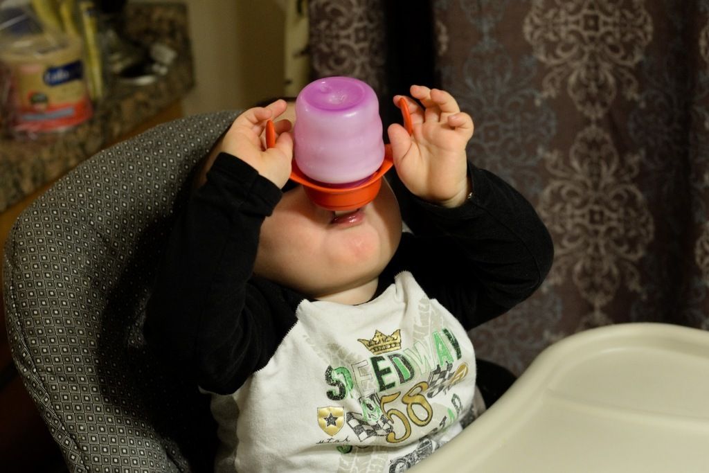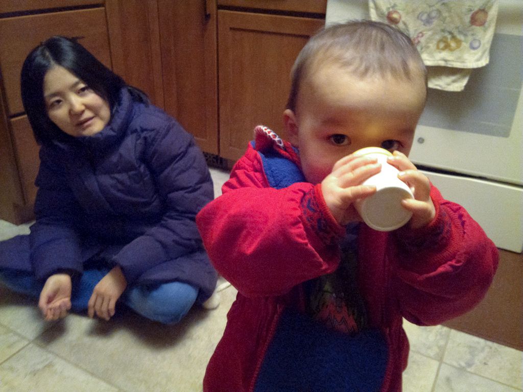Sasuke won't drink cow's milk, so at the recommendation of a friend we gave him Kefir. I had never heard of it, but it's something halfway between milk and yogurt.