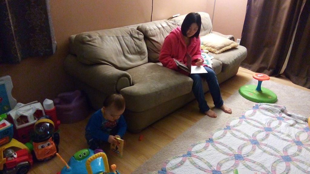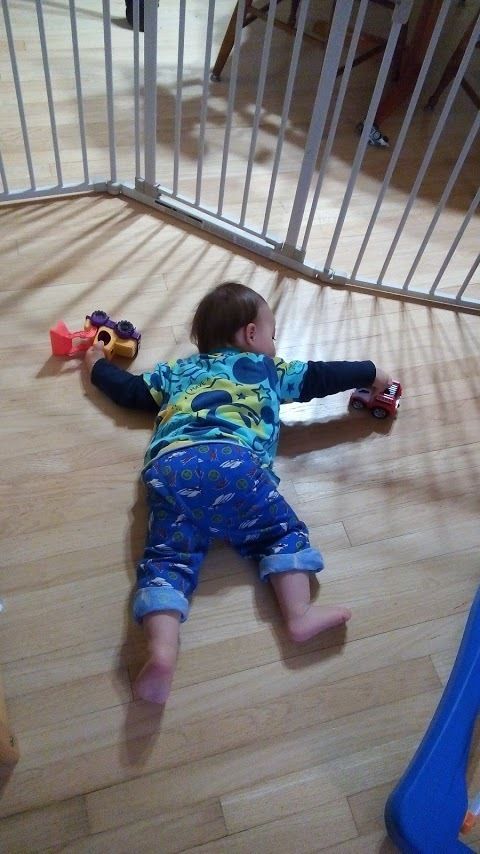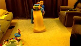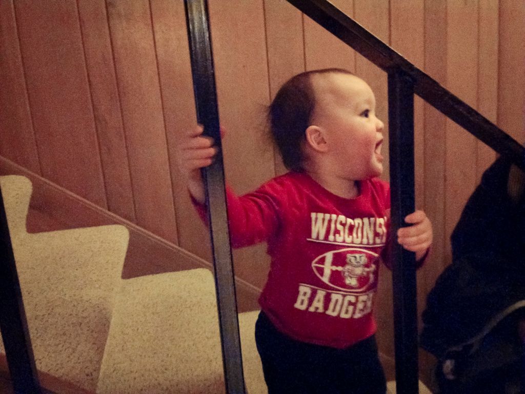 Riding a cow in the West Towne play area. We got there early before all the kids that are way too old to be there show up.
