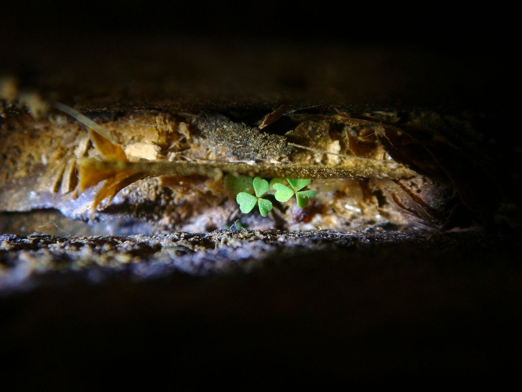 I saw these two incredibly tiny clovers peaking up from between some deck boards. I had to take a macro shot. I used my Sony T100 and a bicycle flashlight.