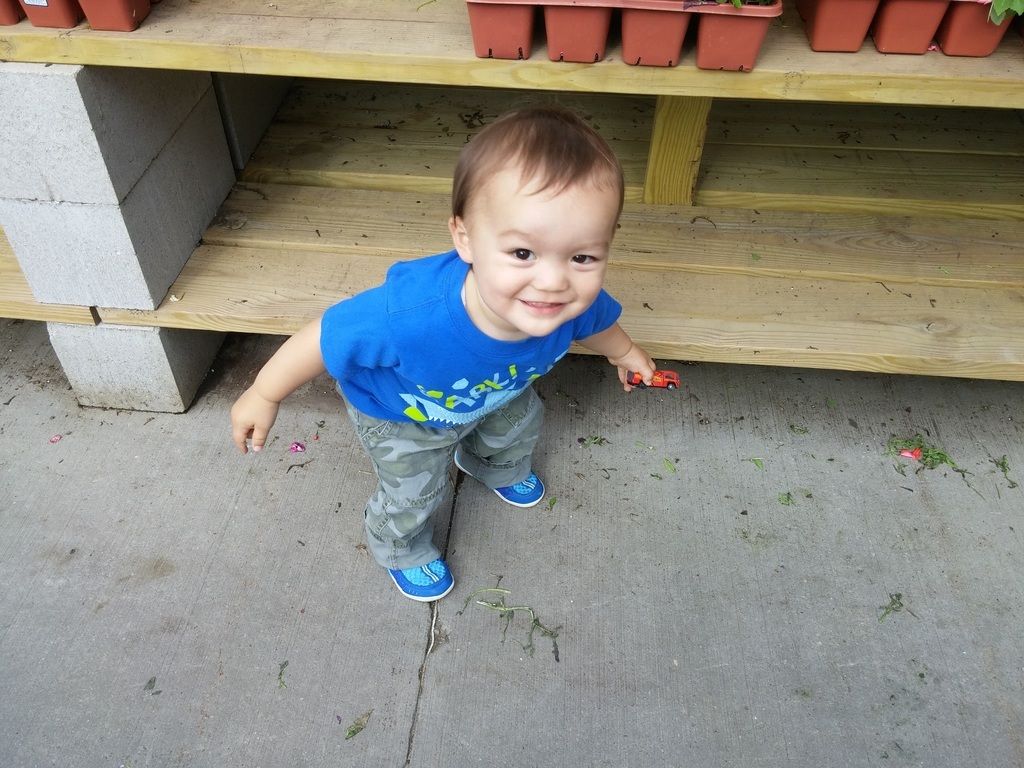 Sasuke had a good time smelling flowers and driving his firetruck on stuff.