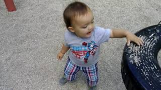 Sasuke pointed out the window and said, "Aam! Aam!" His word for "eat." What do you know, there was a chipmunk eating a peanut.