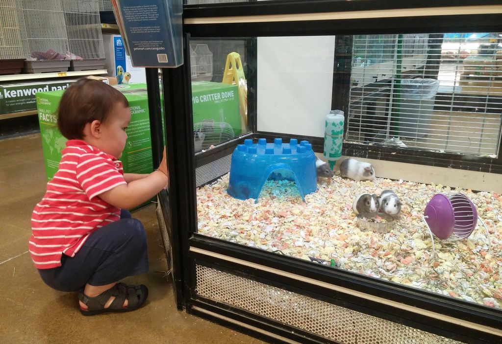 We took Sasuke to the pet store for fun. He liked the guinea pigs the best.