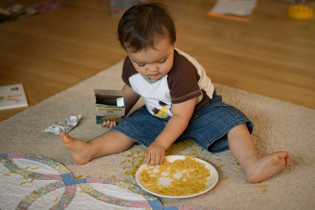 He didn't string a bead, but I was impressed with how well he concentrated on the task, and how patient he was with himself. I let him have some fun with the box of macaroni when we were done.