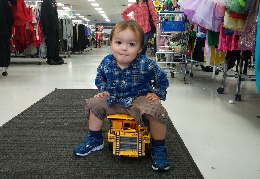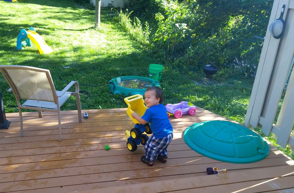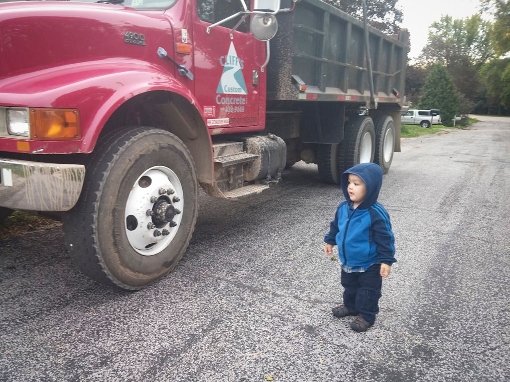 An enormous truck parked in front of our house. Sasuke thought it was pretty great.