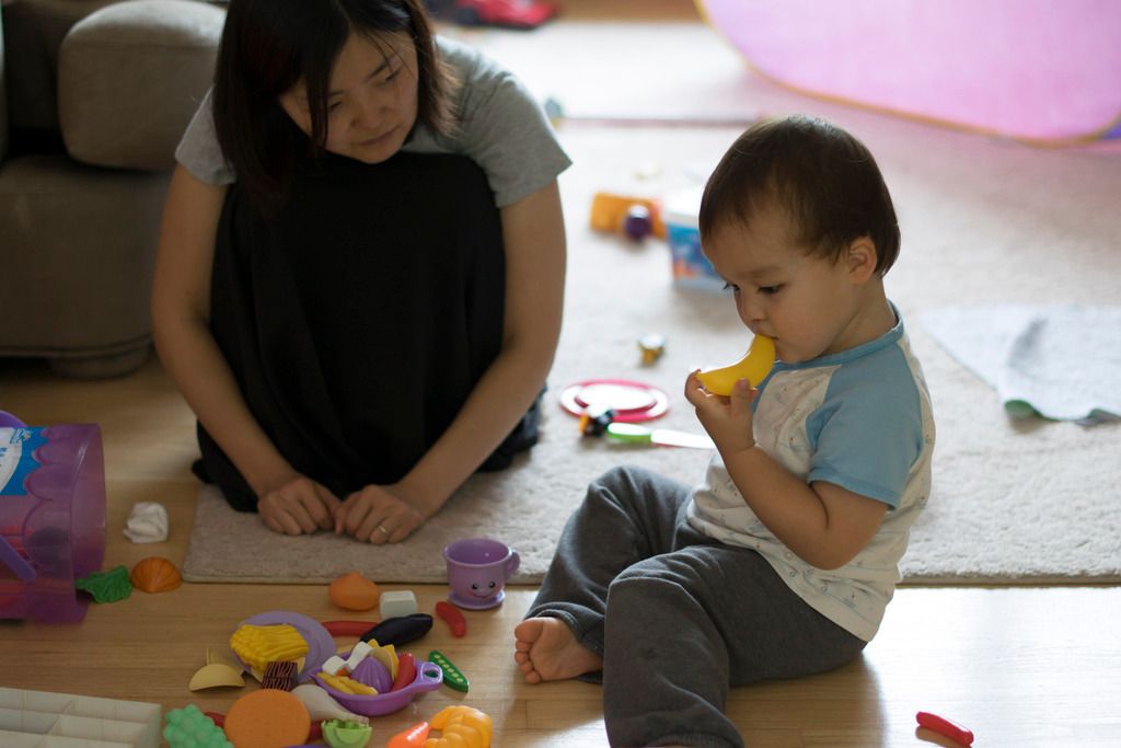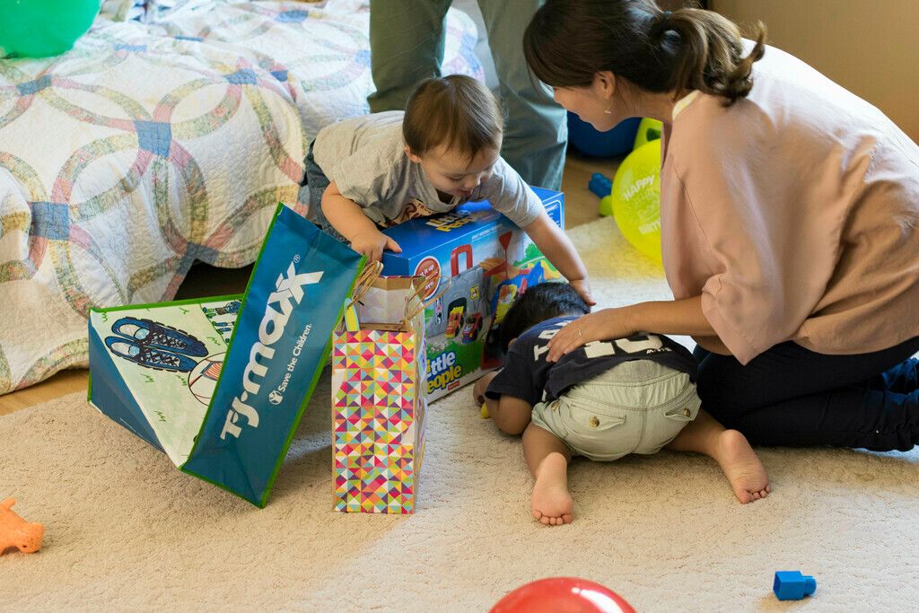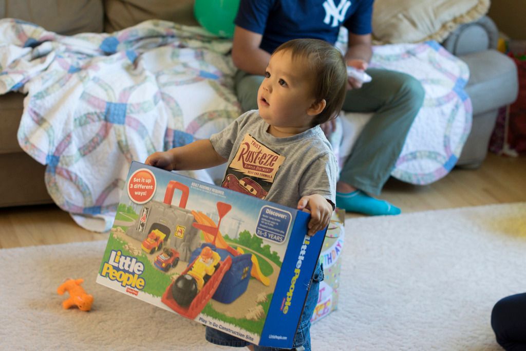 Sasuke comforting his friend Tomo who just learned the Little People set wasn't for him. He calmed down and they played with it together.