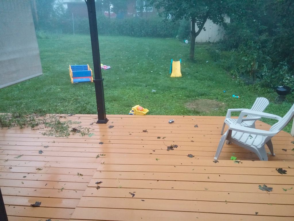 Aftermath of the hail storm yesterday. I got up on a ladder and checked the roof after work. Other than a fair amount of shingle grit in the gutters everything was fine.