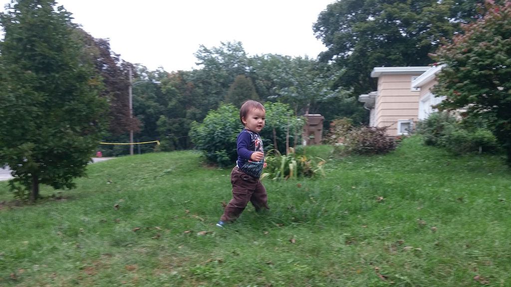 Sasuke running around the front yard. He likes to scare his Mama by peering over the retaining wall.