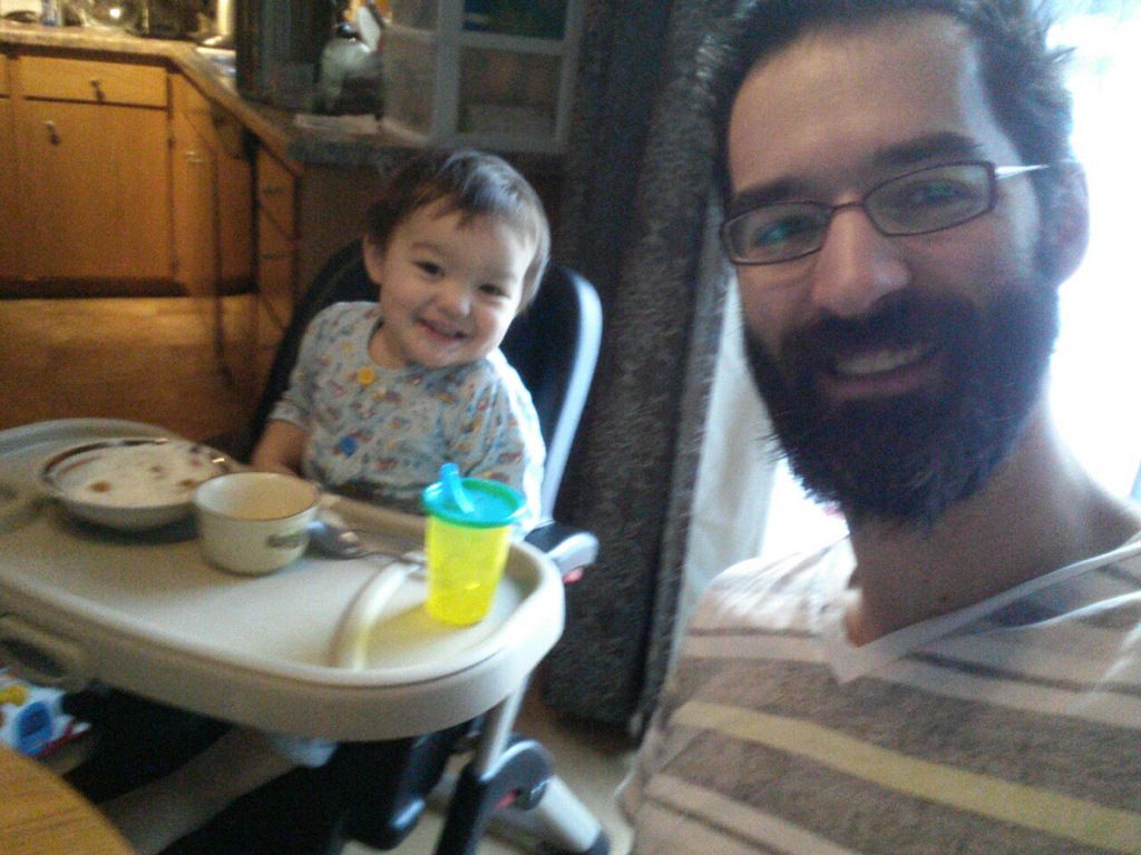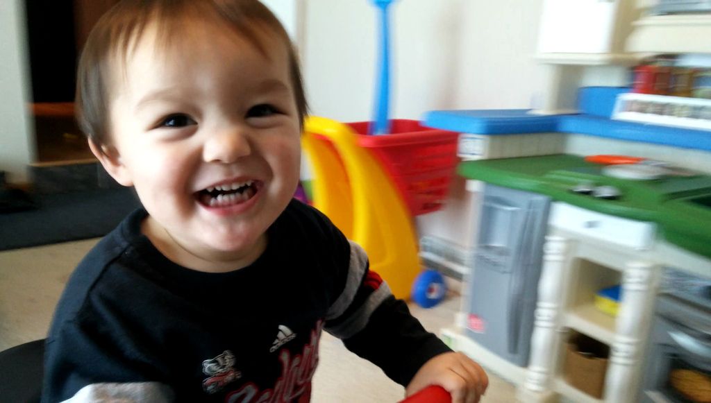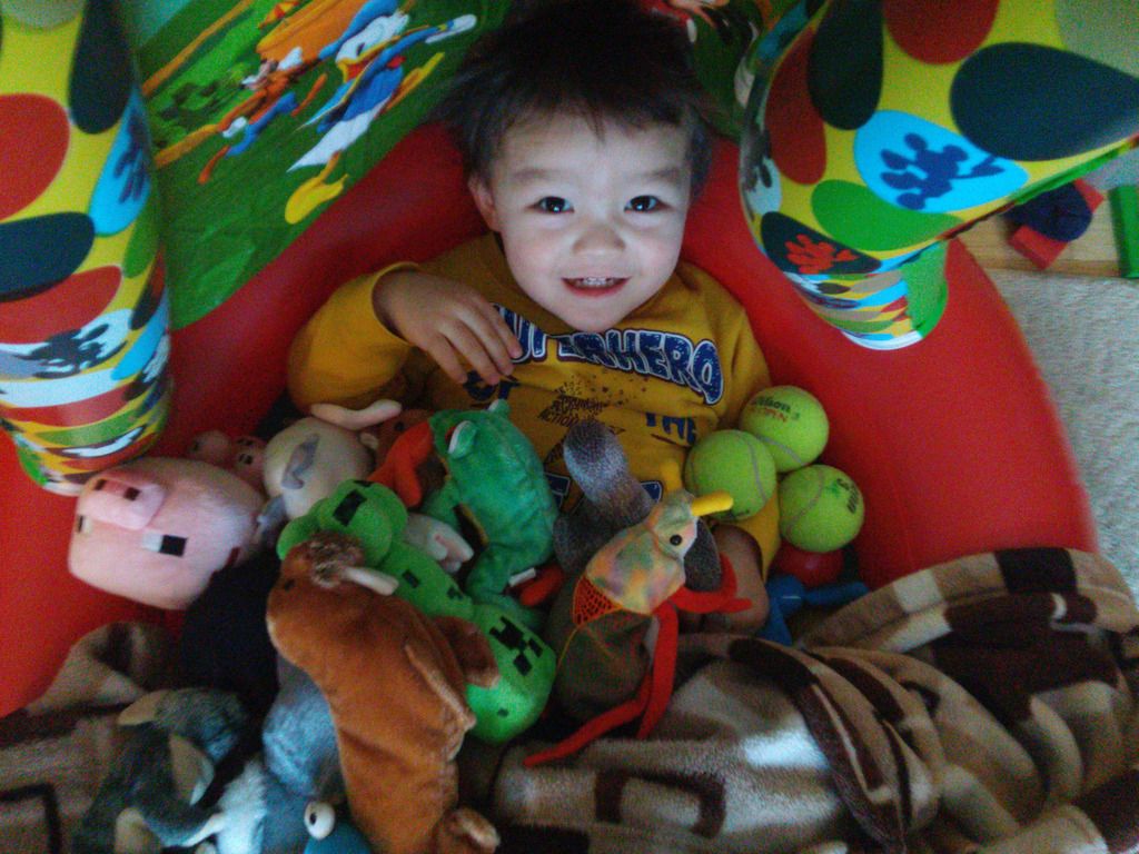 He wants me to pick up the laundry basket with him in it and fly him around.