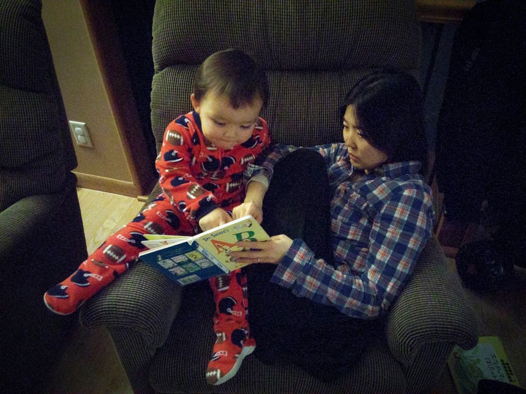 Sasuke did uncharacteristically well at the library today. I asked him what he wanted for lunch and he said, "Apple pie... Sausage!" We already had a donut at the library so we settled on a Costco brat. He was super stoked.