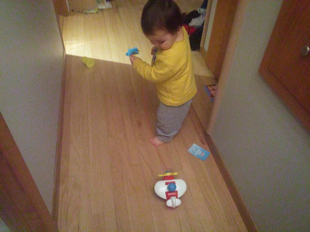 Sasuke saw the screw holding on our plumbing access panel and said "Broken!" He ran off and got his screwdriver and fixed it.