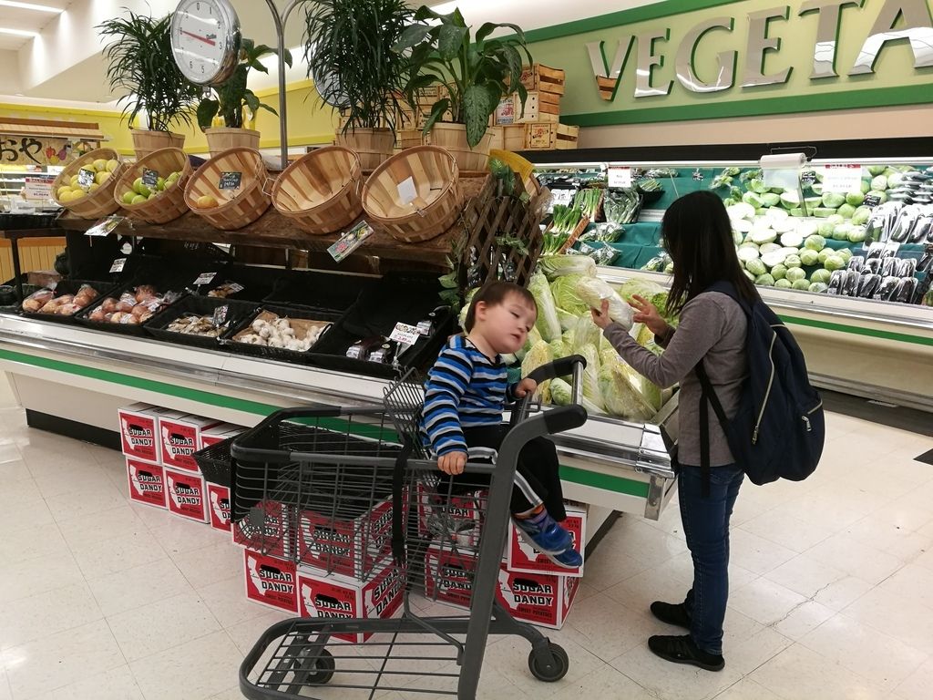 We were first in line so I could sit Sasuke right in front, but as soon as the donut was done so was he.