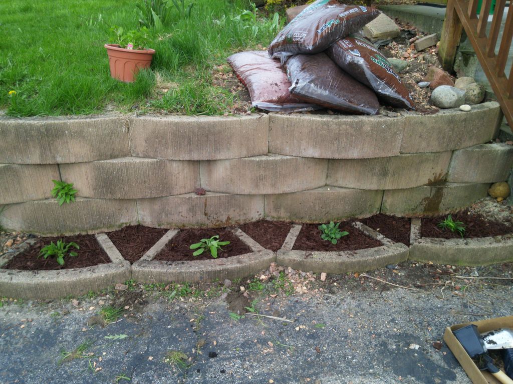I took the day off for a gardening day. We got the garden planted, and I gathered up a load of landscaping rocks we don't care for and put in some plants and mulch. There's still a ton to do.