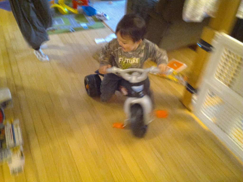 We get a lot of mileage out of Sasuke's trike. Just wait until he uses the pedals.