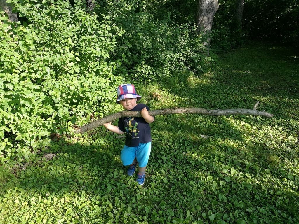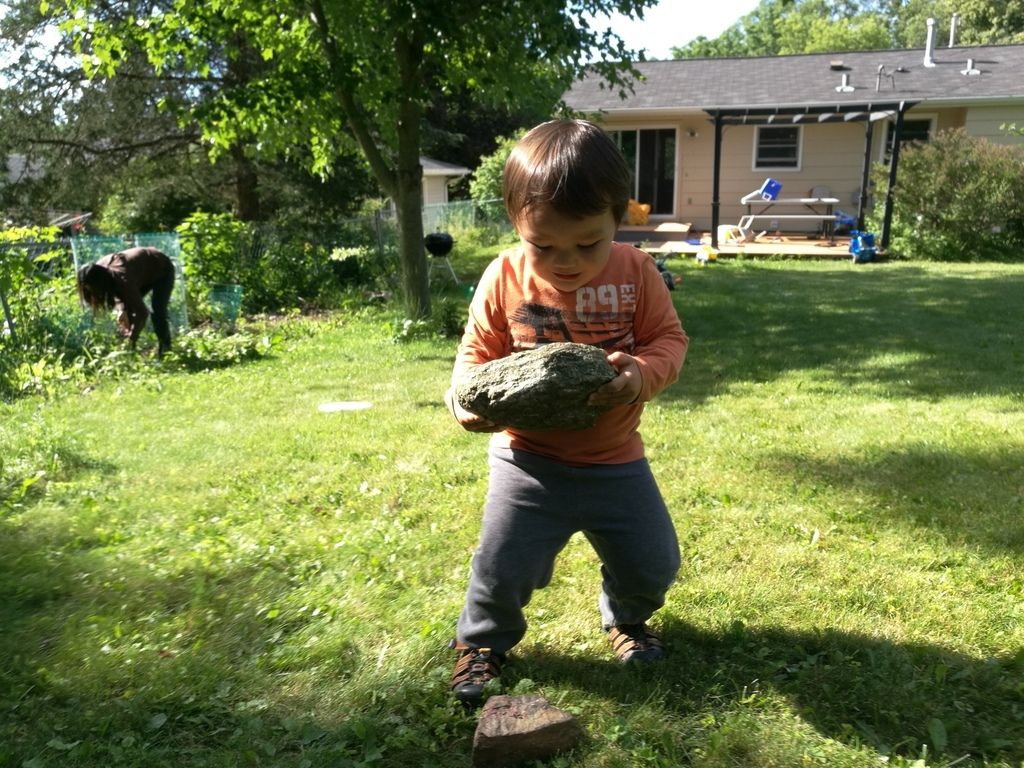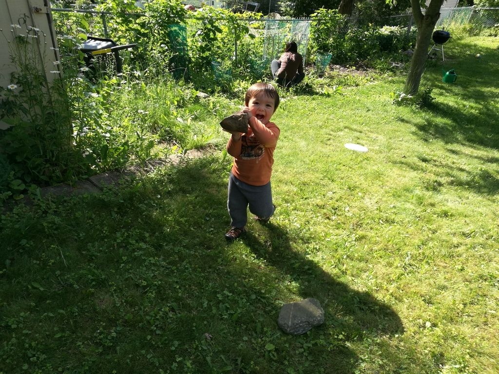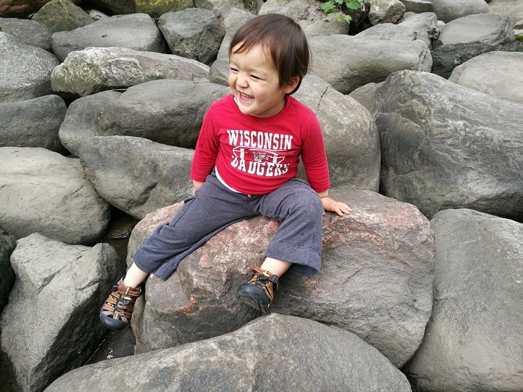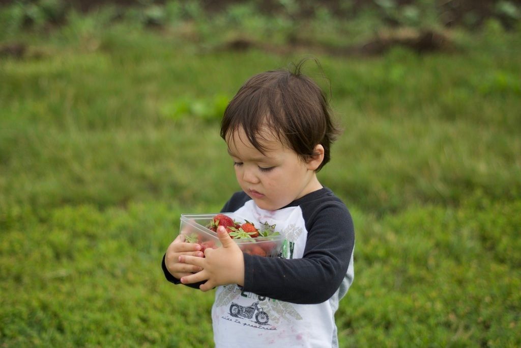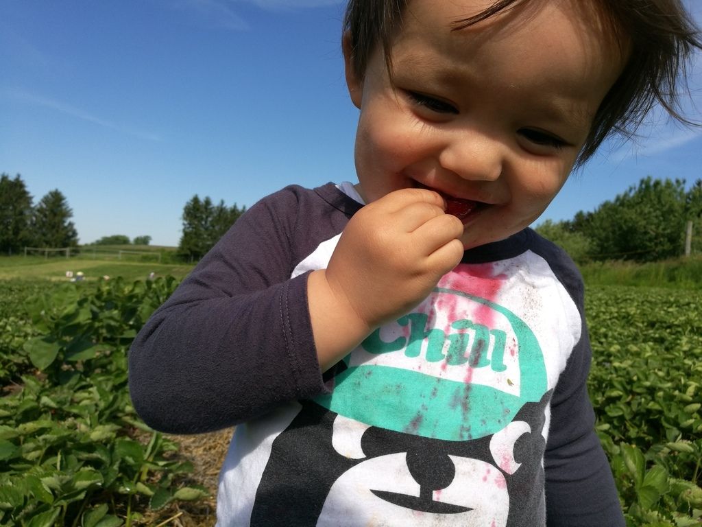 Masami took Sasuke to a strawberry farm this morning. We had some raspberries from our own patch, then we spotted these wild black raspberries at the park.