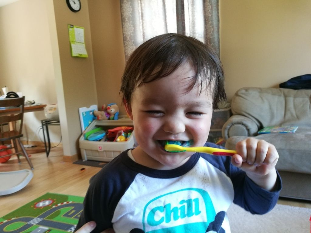 Sasuke was suspiciously quiet in the kitchen, and came out like this. Like any good Papa I took a picture before cleaning him up.
