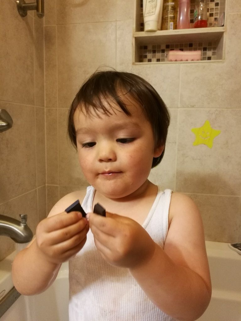 I gave Sasuke one of my Japanese super dark chocolates for dessert. He immediately broke it in half and gave me a piece.