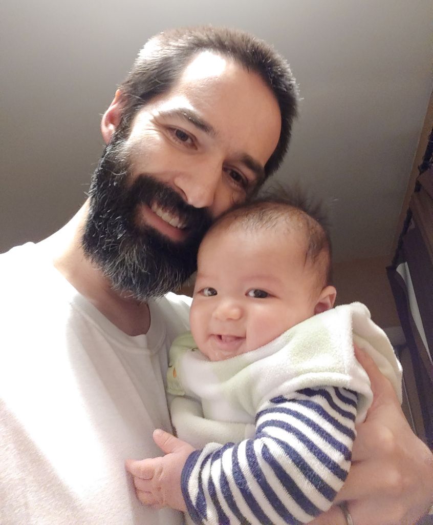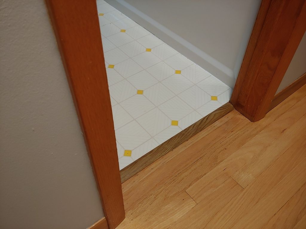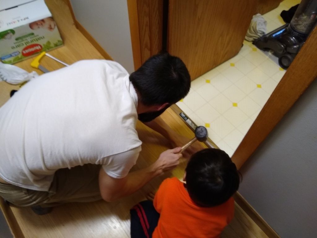 Sasuke hurt himself on the old threshold a little while ago. The old nails kept working themselves up. Here we are installing a nice safe plastic one with hidden anchors.