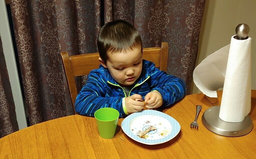 Uncharacteristically well behaved tonight, I wonder if he's coming down with something...