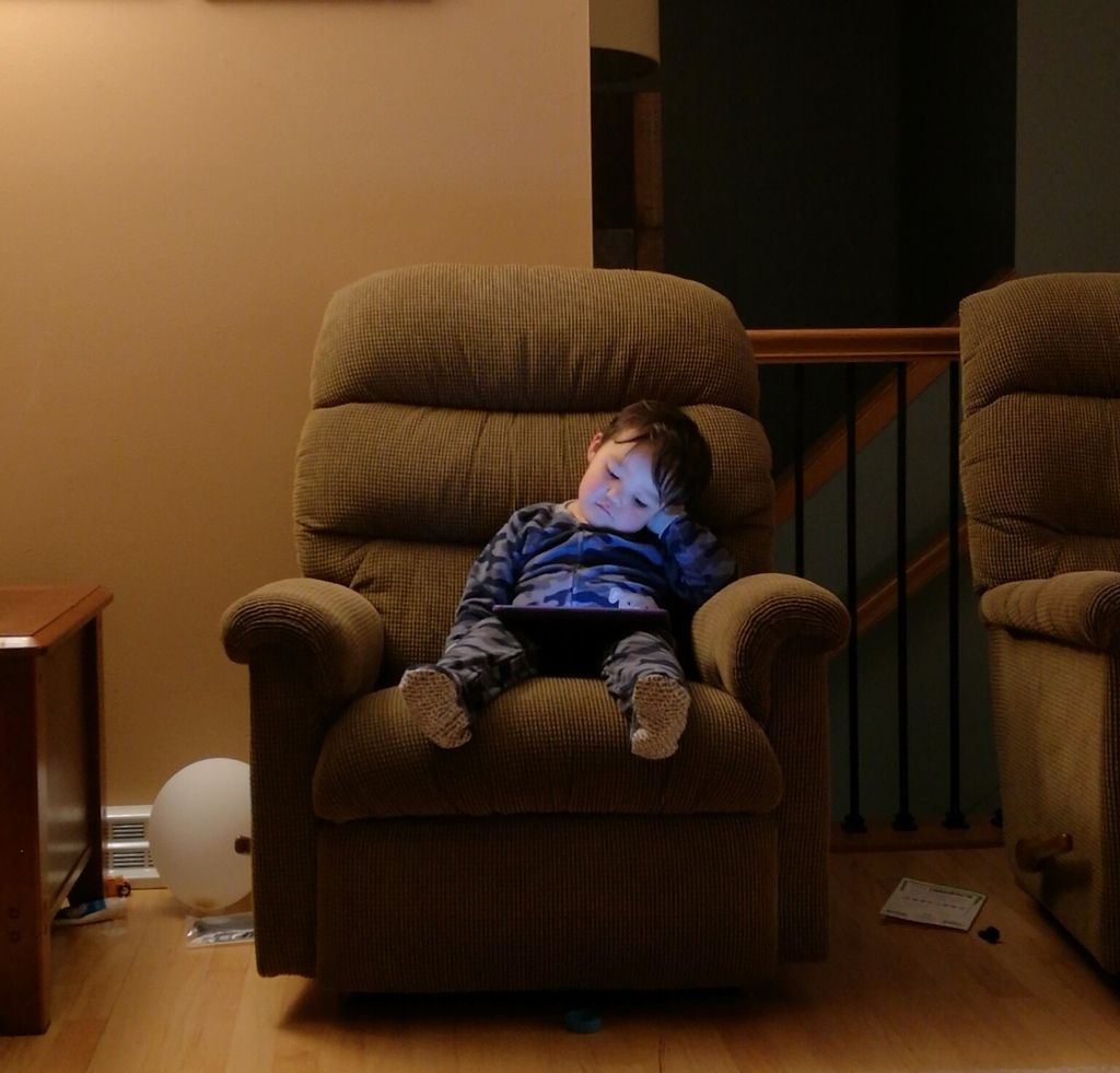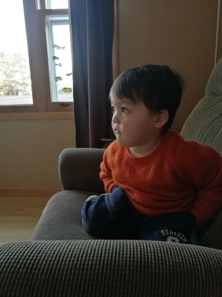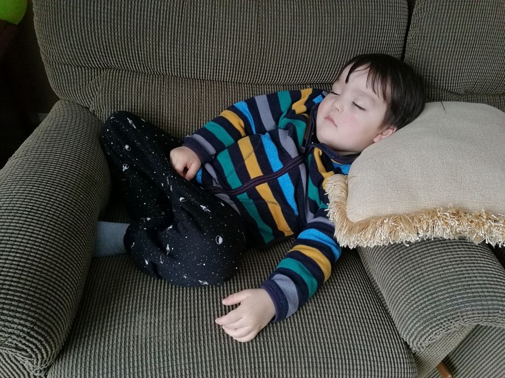 Sasuke likes to hide or pretend to sleep in this chair when I get home. Today though he was out cold. Masami took him sledding and he wore himself out. Boy was he in a foul mood when I woke him up. If I hadn't he'd never go to sleep tonight though.
